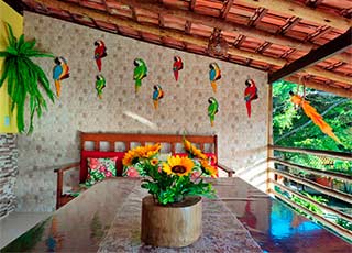 House retreat conveniently located in the tropical forest yet within the confinement of the village. 3 suites with air conditioner or ceiling fans. Beds for 9 persons. Private balconies and bathrooms in each of the suites. Chef’s kitchen with indoor/outdoor bar and center island. Spacious garden with deck and swimming pool. Wi-Fi.TV. Safe deposit box. Bbq. Private parking.Rua Amendoeira - Concha