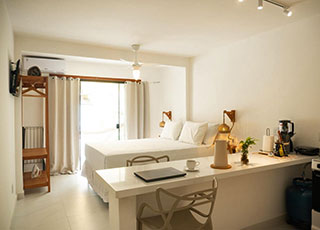 Bungalow for rent on daily or weekly basis, surrounded by a beautiful tropical garden, conveniently located next to the beach and the town center. Comfortable bedroom for 3 persons with air conditioner, TV, Wi-Fi, private bathroom and balcony with hammock facing the forest. Kitchen with microwave, minibar and induction cooktop.