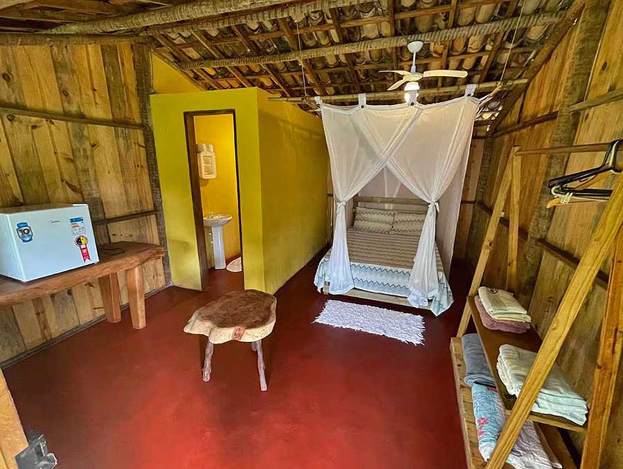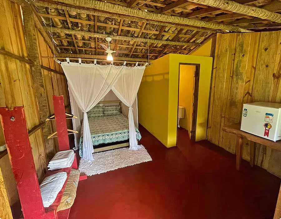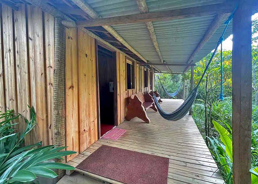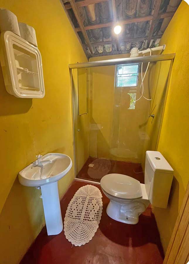Hospede-se em bangalôs imersos na natureza. São 4 chalés rústicos, para duas pessoas cada, completos, com cama de casal. No meio da Mata Atlântica, com cozinha comunitária. Um lugar de tranquilidade e descanso. Opção também de duas moradias para aluguel mensal com cozinha comunitária, Wi-Fi, água e luz inclusos.