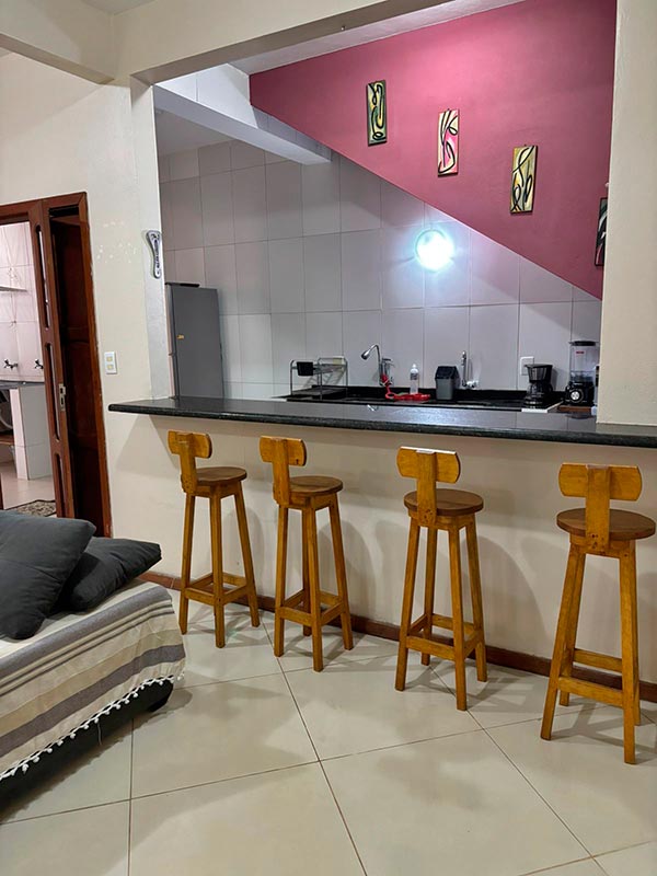 Casas para temporada amplas, aconchegantes e independentes, com opção de 1, 2 ou 3 dormitórios, cozinha equipada, ar-condicionado, ventilador, TV, Wi-Fi e local para guardar carro e moto.