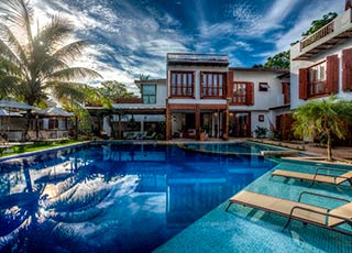 Vila Rosa is an original colonial manor house of a Cocoa Plantation. Located 20km from Itacare on the margins of the Rio de Contas, Surrounded by decorative gardens and stone pools. It is truly an escape from civilization… In a luxurius style. Antique furniture, muraled walls and decorative floors, large rooms with queen size bed.
