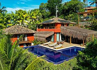 House retreat conveniently located in the tropical forest yet within the confinement of the village. 3 suites with air conditioner or ceiling fans. Beds for 9 persons. Private balconies and bathrooms in each of the suites. Chef’s kitchen with indoor/outdoor bar and center island. Spacious garden with deck and swimming pool. Wi-Fi.TV. Safe deposit box. Bbq. Private parking.Rua Amendoeira - Concha