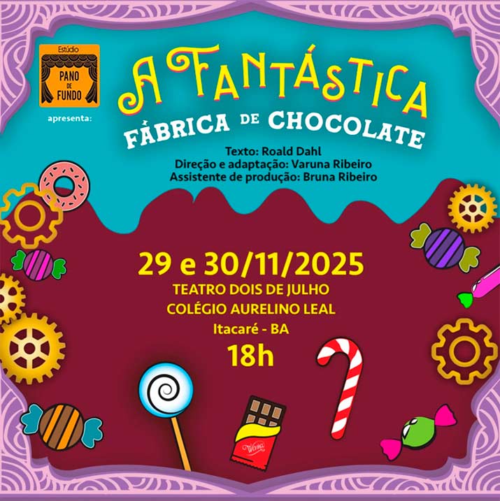 Os alunos de teatro vão abrir as portas da fábrica mais doce e divertida do mundo! Entre músicas, risadas e muita imaginação, eles dão vida a essa história cheia de cor, fantasia e lições sobre o que realmente importa. Um espetáculo encantador, feito com muito amor, dedicação e talento! Vem se derreter com a gente!